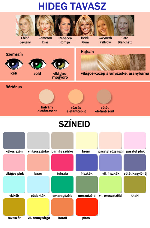 Leegyszerűsítve elmondható, hogy a tavaszi és őszi típusba tartozóknak meleg árnyalatú bőrszínük van, míg a nyári és téli típusúaknál a hideg árnyalatok dominálnak. Az évszakokon belül is megkülönböztethetünk hideg és meleg évszaktípusokat: ha főleg a sárgás, vöröses, barnás színek játsszák a főszerepet a kinézetedben, akkor meleg, ha pedig a kékes, szürkés, hűvös színek, akkor hideg típus vagy.